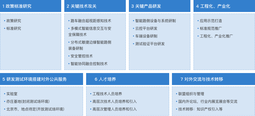 重点围绕城市交通、公路交通、轨道交通、民航、水运等领域开展自主研发,在标准研究、关键技术研发与设备研制及产学研技术合作方面开展工作。